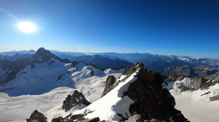 Fünf Gipfel über 4.000 m in einer Reihe, von denen vier zu den am anspruchsvollsten zu besteigenden der Alpen zählen. Die maximale Kletterschwierigkeit übersteigt jedoch nie den 5. Grad. Dennoch zu Recht eine Tour des Auswahlführers „Im extremen Fels“?