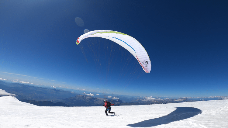 Vom Gipfel und seiner Umgebung ist mit dem Gleitschirm praktisch ein Start in fast alle Richtungen möglich (nach Süd über Südost bis Ost eingeschränkt bzw. anspruchsvoller -> Courmayeur). Unterhalb des Gipfels, in westlicher Richtung, befindet sich jedoch ein relativ flaches Plateau, welches perfektes Startgelände mit Startrichtungen Südwest, West, Nord, bis Nordost bietet (-> Chamonix).